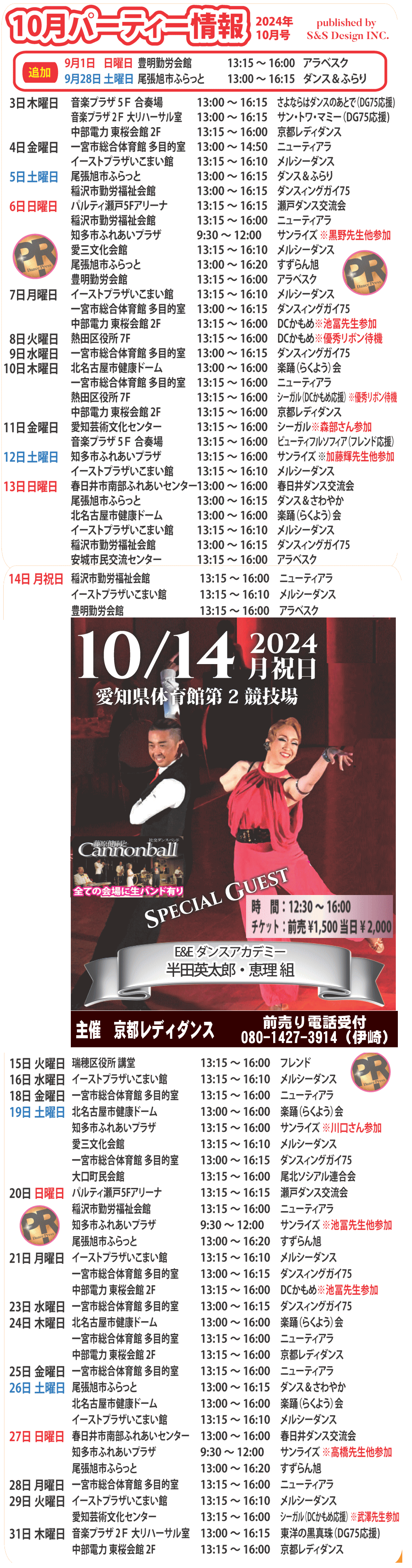 パーティーへは予定表を確認の上、お越しください。