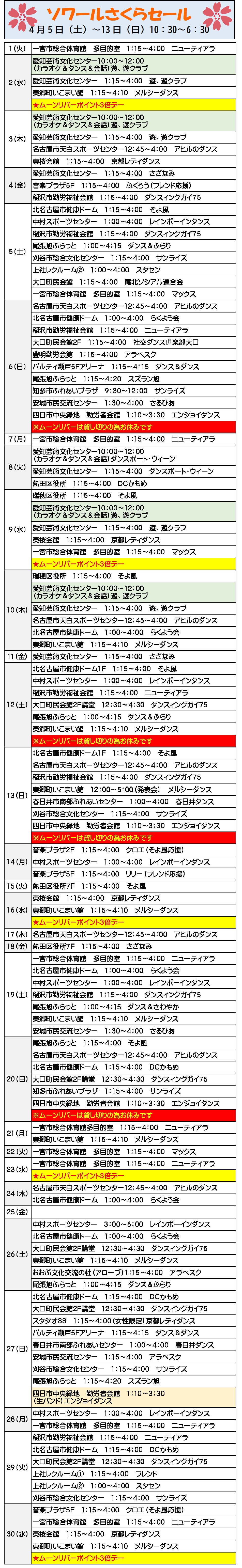各会場とも優先行事等により予定が変更になることもございます。 パーティーへは予定表を確認の上、お越しください。